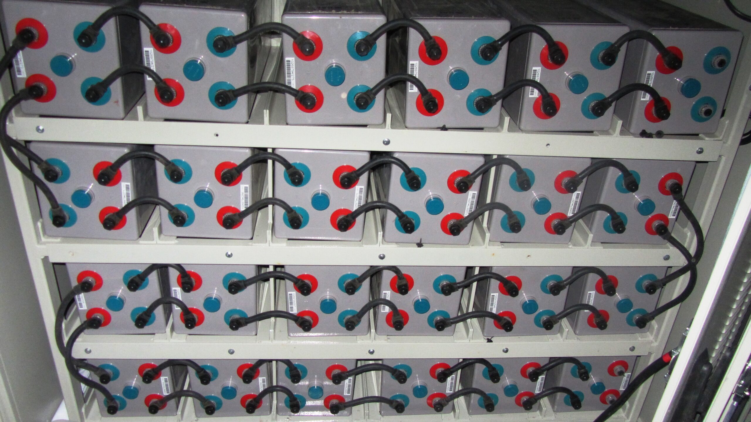Gabinete porta 25 baterias tipo bala verticales de 2 Vdc 1000 AH