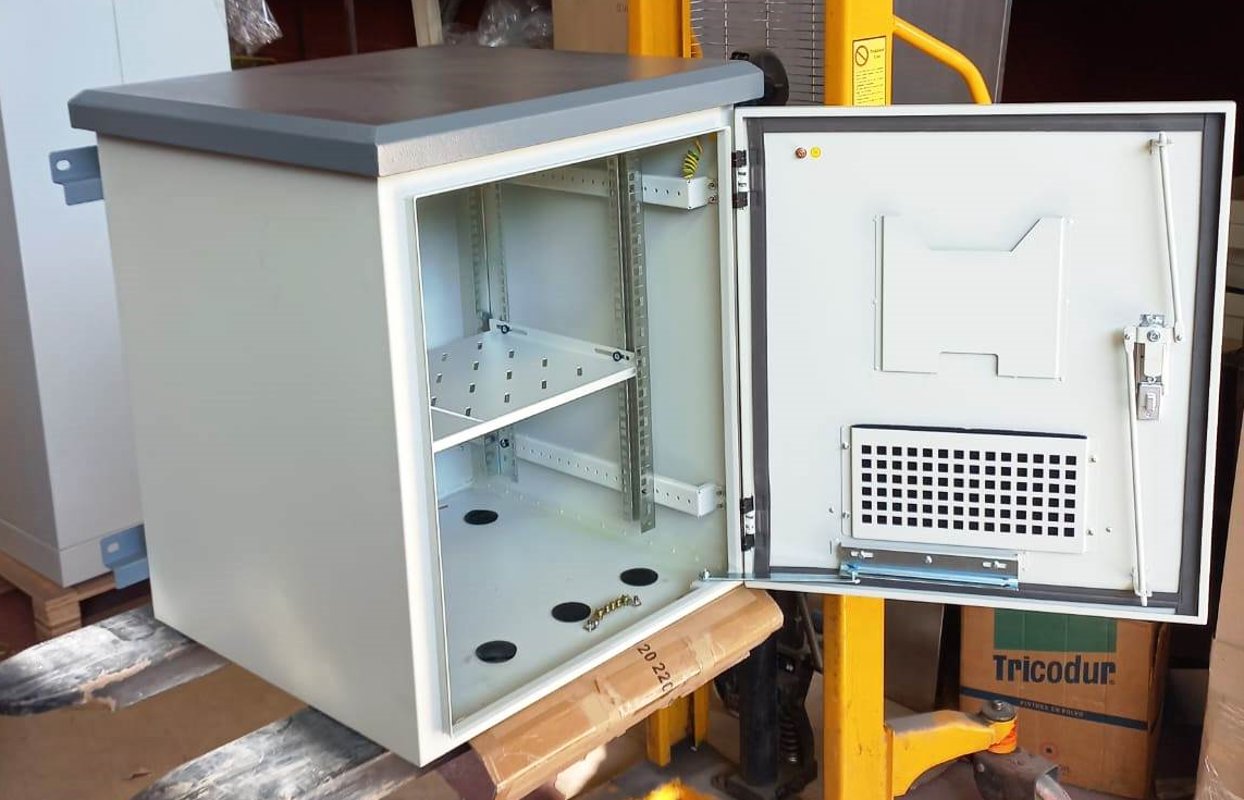 Gabinete Rack Exterior 12 UR está diseñado para alojar equipos de telecomunicaciones, redes y electrónica en entornos exteriores, proporcionando protección contra polvo, agua y acceso no autorizado.